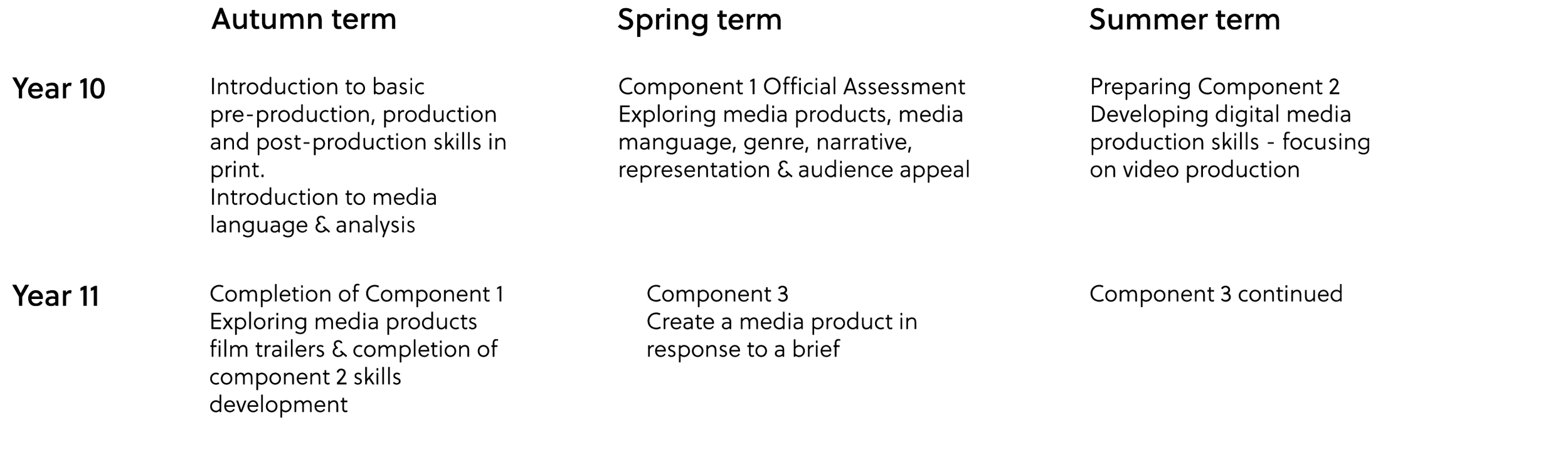 It provides an opportunity for those who have an interest in media to explore, develop and test their creativity within a qualification which is stimulating and demanding, and provides a supportive transition from general to more specialised study.