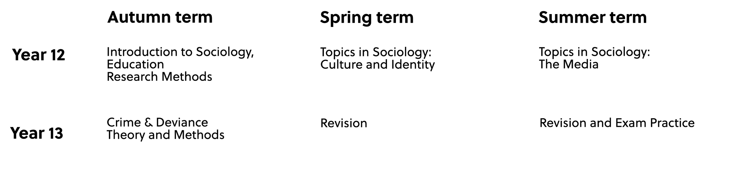 Sociology is a fascinating subject for anyone who is interested in why people, communities and social groups function in the ways that they do. It is about understanding the world around us, the opportunities, systems and injustices in the world, and how to change these. It is an academic subject that requires a 5 or above in English and Maths, and leads really well into career paths including market research, government and politics, media business and management, education, health, welfare and the caring professions. It goes very well with subjects like Media Studies, A Level Drama, Film Studies, Maths, English Literature and A Level Art.